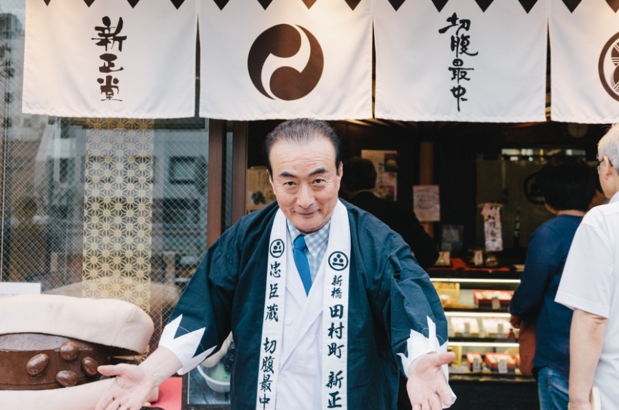 継承後、当時の主役だった「豆大福」の他に日持ちする新商品を開発したいと考え、周囲からは大反対されたが、1990年、地の利を生かした「切腹最中」を発売。今では新橋の名物お菓子として多くのお客さまに愛され続けている。
