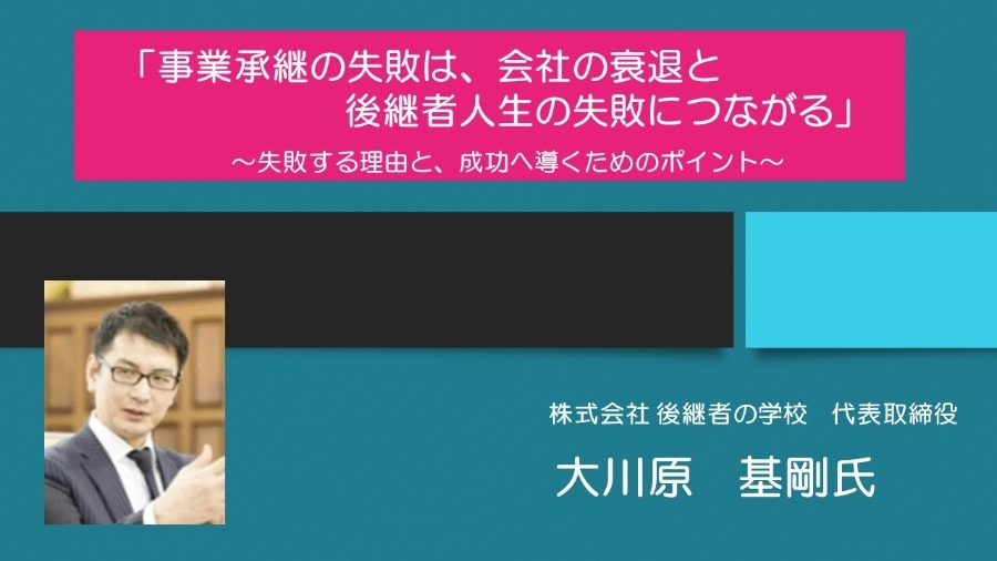 株式会社 後継者の学校 代表取締役 大川原 基剛氏