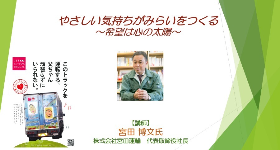 今回はさらに、トラックに子どもの絵をラッピングして、事故抑止につなげる仕組み「こどもミュージアムプロジェクト」やすべての従業員、社外の人誰もが参加できる経営会議「みらい会議」についてもお話しさせていただきます。